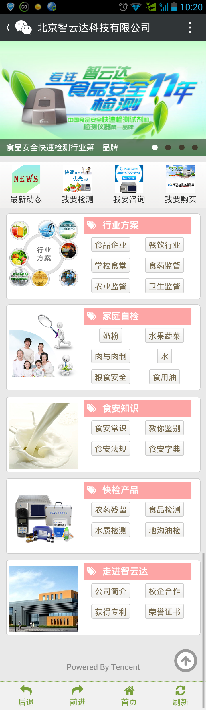 智云達微信公眾服務(wù)號已經(jīng)開(kāi)通,與官網(wǎng)同步的微官網(wǎng)能為用戶(hù)提供最新的食安資訊與食安知識,第一時(shí)間同步公司動(dòng)態(tài)、新品發(fā)布、電商活動(dòng)。倘若您有疑似食物安全問(wèn)題,可以預約智云達食品安全檢測消費者體驗中心,我們?yōu)槟赓M檢測;遇到家庭食安問(wèn)題,您可以隨時(shí)掌上咨詢(xún),我們即時(shí)為您解答;食品企業(yè)、餐飲企業(yè)、學(xué)校食堂、食藥監督、農業(yè)監督、衛生監督解決食品安全隱患,只需一通電話(huà)便可索取您所需要的解決方案,倘若您有心儀的檢測產(chǎn)品,可在京東一站式購買(mǎi),我們竭誠為您服務(wù)。