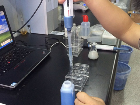 2、用干燥、潔凈的比色管或適當容器盛放奶粉,用純凈水1:10稀釋?zhuān)?份奶粉+10份純凈水),溶解后用于檢測。