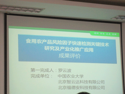 2014年8月31日上午,在中國農業(yè)大學(xué)食品學(xué)院二樓會(huì )議如期成功舉辦了“食用農產(chǎn)品風(fēng)險因子快速檢測關(guān)鍵技術(shù)成果評價(jià)會(huì )”。該會(huì )議由農業(yè)部中國農學(xué)會(huì )組織,會(huì )議評審專(zhuān)家組由中國工程院孫寶國院士擔任組長(cháng),由天津科技大學(xué)校長(cháng)王碩擔任副組長(cháng),另有農科院加工所等科研院所及高校的專(zhuān)家參加。