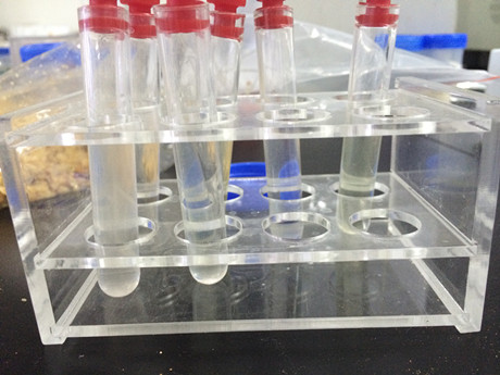 2、取兩個(gè)比色皿,分別為樣品組合對照組。在樣品管加入3ml樣品液,在對照管中加入3ml緩沖液,隨后分別加入20ul顯色劑和50ul酶試劑。蓋塞混勻靜置10min。搖勻后放置10min,加入20ul l底物搖勻