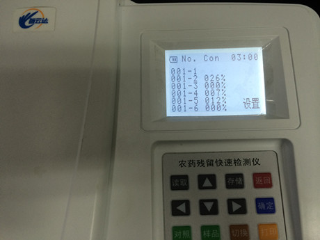 實(shí)驗結果:抑制率分別為26%、0%、7%、12%、和0%,農殘未超標。判定依據,抑制率≥50%時(shí),農殘超標。
