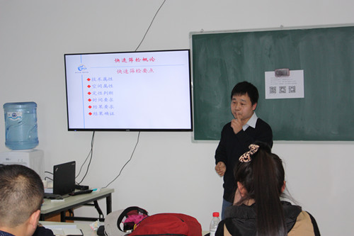 3月11日上午由主講講師嚴可以老師繼續做食品安全快速篩檢的培訓。嚴可以:北京科技大學(xué)分析化學(xué)碩士,北京科技大學(xué)講師,北京科技大學(xué)青年教師教學(xué)基本功大賽一等獎,北京智云達試劑研發(fā)部經(jīng)理。