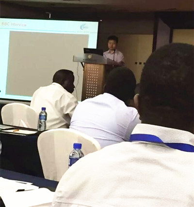 洽談會(huì ),首先是加納灌溉發(fā)展局副主任哈蒙弗朗西斯丹宣講加納在節能減排的現狀。