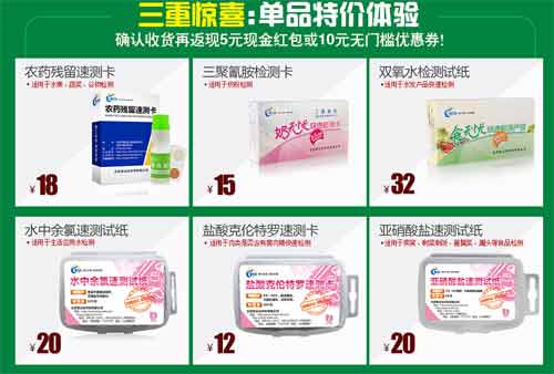 尤其常見(jiàn)的農藥殘留速測卡、三聚氰胺速測卡、雙氧水快速檢測試紙等多款適合家庭、個(gè)人的快檢產(chǎn)品超低價(jià)體驗。