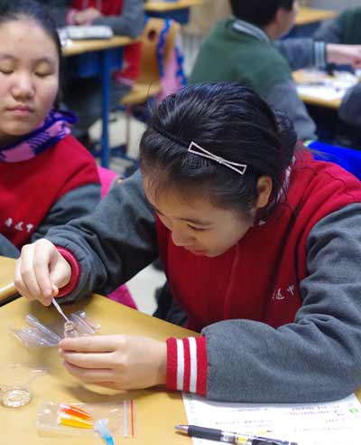 我們的課程主要分為三大主體部分,怎樣吃才健康?(實(shí)驗:調配繽紛飲料);健康零食與化妝食品(實(shí)驗:冰糖銀耳蓮子中二氧化硫的檢測);談“油”色變的地溝油(實(shí)驗:地溝油的檢測)。為中學(xué)生普及食品安全知識的同時(shí),提高在校學(xué)生對于食品安全及營(yíng)養方面的認知。