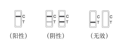 無(wú)效:位置C不顯示出條帶,則無(wú)論位置T顯示出條帶與否,該速測卡均判為無(wú)效,請重測。