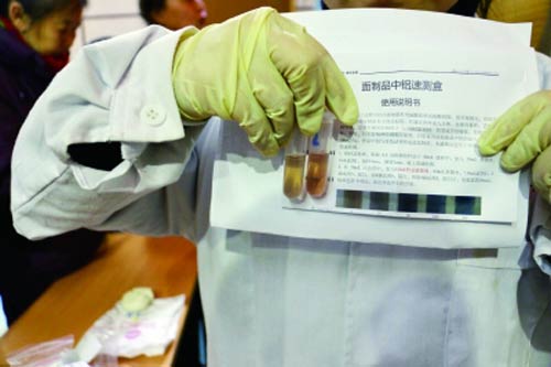 2016年12月14日9:00, 北京智云達與法制晚報聯(lián)手走進(jìn)朝陽(yáng)區農光里中社區居委會(huì ),與社區20余位居民一起實(shí)驗檢測饅頭中明礬的含量。