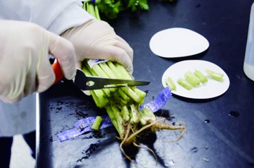 北京智云達技術(shù)工程師楊老師和王老師首先將樣品粉碎,再通過(guò)使用北京智云達自主研發(fā)生產(chǎn)的快速檢測產(chǎn)品:甲醛速測盒,對樣品溶液中的甲醛含量進(jìn)行檢測。