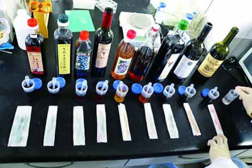 北京智云達技術(shù)工程師楊老師和王老師通過(guò)使用北京智云達自主研發(fā)生產(chǎn)的快速檢測產(chǎn)品:紅葡萄酒摻偽速測盒,對樣品溶液進(jìn)行檢測。