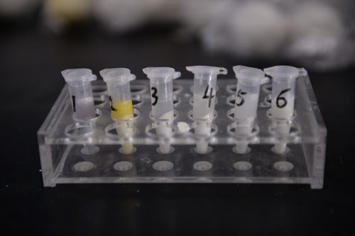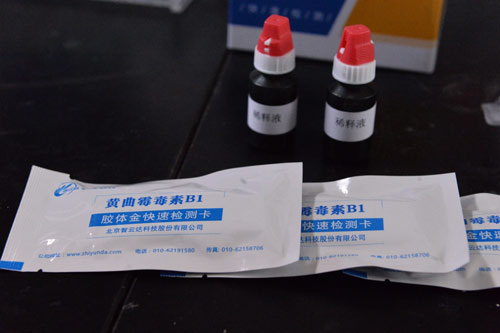北京智云達技術(shù)工程師楊老師和王老師首先將樣品粉碎,通過(guò)使用北京智云達自主研發(fā)生產(chǎn)的快速檢測產(chǎn)品:黃曲霉毒素B1膠體金檢測卡,對樣品溶液進(jìn)行檢測。