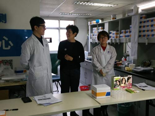 北京智云達技術(shù)工程師楊老師和王老師首先對樣品取樣,再通過(guò)使用北京智云達自主研發(fā)生產(chǎn)的快速檢測產(chǎn)品:化妝品苯二胺類(lèi)快篩試劑盒,對樣品溶液進(jìn)行檢測。