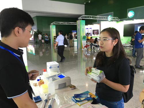 外國友人現場(chǎng)咨詢(xún)智云達食品安全快速檢測產(chǎn)品