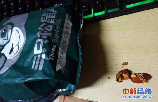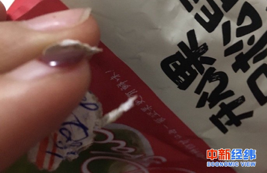 消費者徐麗(化名)告訴中新經(jīng)緯客戶(hù)端,自己3月4日在唯品會(huì )上購買(mǎi)了一些三只松鼠的開(kāi)心果,沒(méi)曾想竟在里面吃出了一塊爛掉的標簽。