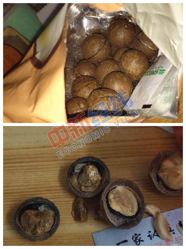 劉洋(化名)也在三只松鼠的產(chǎn)品中吃出了蟲(chóng)子。前段時(shí)間,有朋友送了劉洋一份三只松鼠大禮包,“大部分東西表面上看沒(méi)什么問(wèn)題,就正常吃了,直到打開(kāi)那包蟹黃瓜子仁。里面不僅有類(lèi)似霉菌的東西,而且還有一只拉著(zhù)白絲的蟲(chóng)子,感覺(jué)能爆漿的那種,惡心壞了,剩下的幾包東西一起丟了?!眲⒀笳f(shuō)。