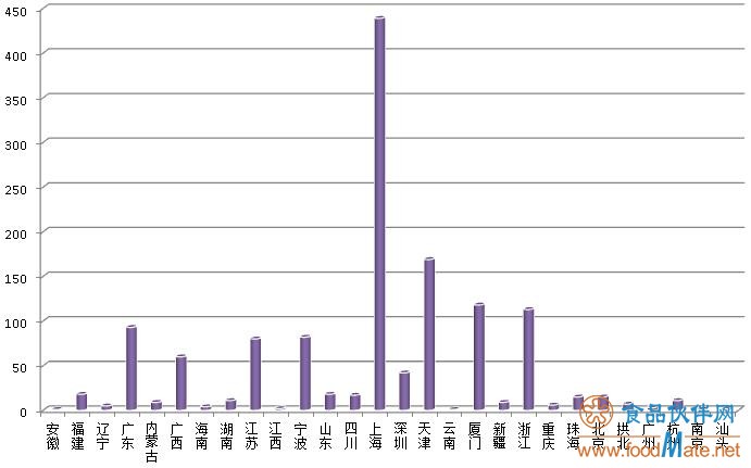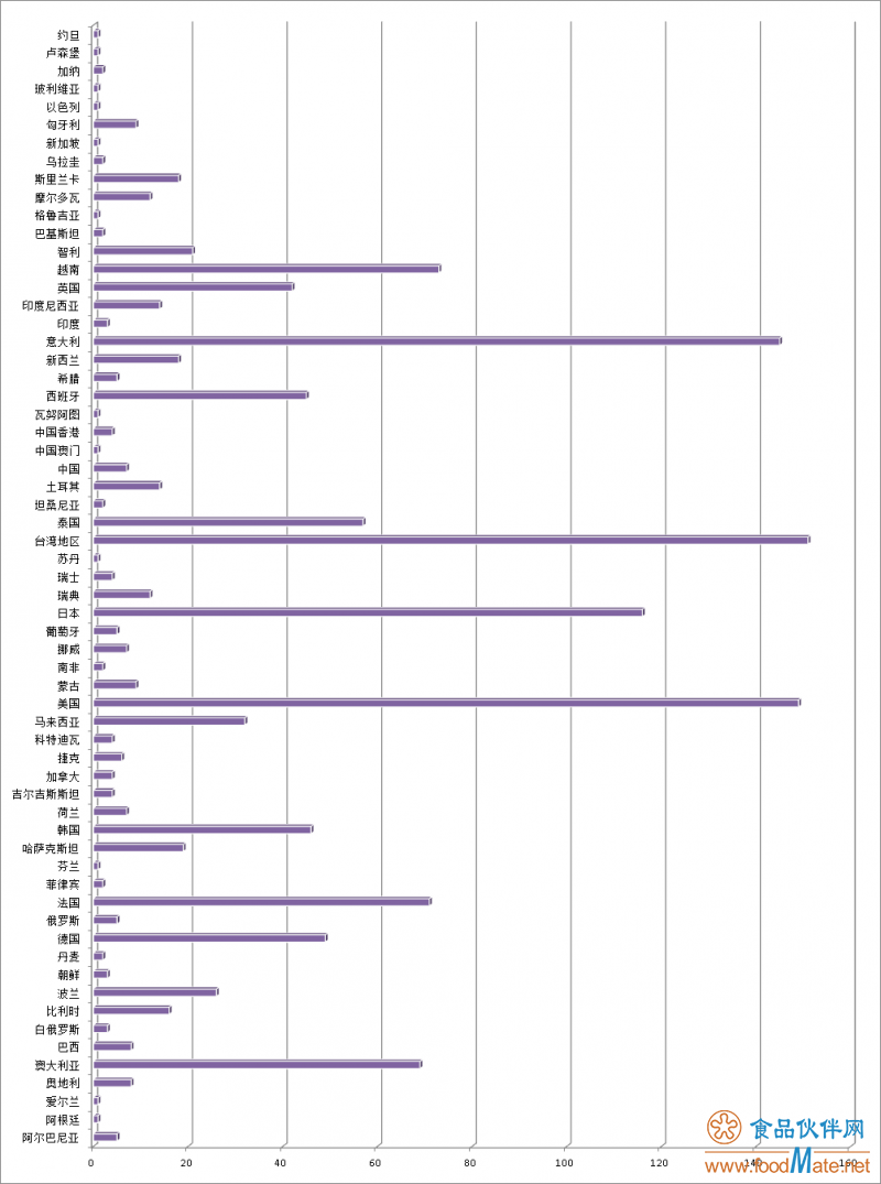 統計顯示,這些食品來(lái)自六十多個(gè)國家或地區。其中,意大利、美國、日本這些國家以及臺灣地區的不合格食品居多,尤以臺灣地區的最多。