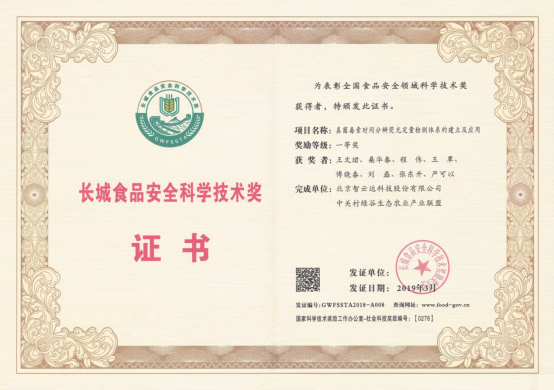 智云達榮獲長(cháng)城食品安全科學(xué)技術(shù)獎一等獎