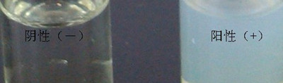 3min內,若上層出現黃白色渾濁,則可判定樣品中含有噻唑烷酮類(lèi)物質(zhì),為陽(yáng)性(+);否則判為陰性(-)。