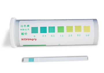 以紙片作為載體做成卡片形式,通過(guò)顯色劑與游離脂肪酸或過(guò)氧化物進(jìn)行反應,其在紙片上顯色的程度與游離脂肪酸或過(guò)氧化物的含量成正比,以此達到酸價(jià)或過(guò)氧化值的半定量檢測。