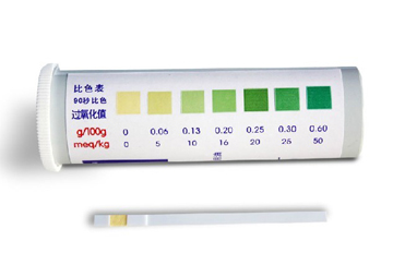 3. 過(guò)氧化值測試紙的反應計時(shí)視環(huán)境溫度而定,在表中規定的時(shí)間內比色有效。