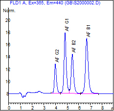 本產(chǎn)品的測定的基礎是抗原抗體反應,黃曲霉毒素單克隆抗體連接在柱內凝膠上,樣品中的黃曲霉毒素經(jīng)過(guò)提取、過(guò)濾、稀釋?zhuān)缓髮悠诽崛∫壕徛耐ㄟ^(guò)黃曲霉毒素免疫親和層析柱,在免疫親和柱內,毒素與抗體結合,之后洗滌免疫親和柱除去沒(méi)有被結合的其他物質(zhì)。用甲醇洗脫黃曲霉毒素,然后注入到分析儀器中用于檢測。
