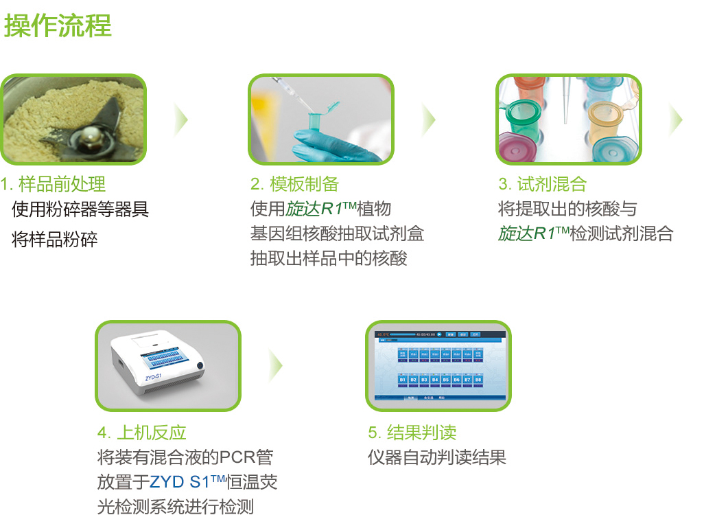 旋達R1?轉基因檢測系列試劑,基于恒溫擴增技術(shù)平臺,以特別設計的2對特異性識別檢測靶標的獨有基因序列,能快速、準確地鑒定檢測出樣品中是否含有特定轉基因成分。