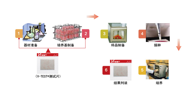 V-TEST指標菌快速檢測試紙片為預制型培養基系統,它含有標準方法的培養基,冷凝膠和指示劑,適用于食品、飲用水及原料中的指標菌的測定,也可以用于食品加工環(huán)境中的指標菌的測定。