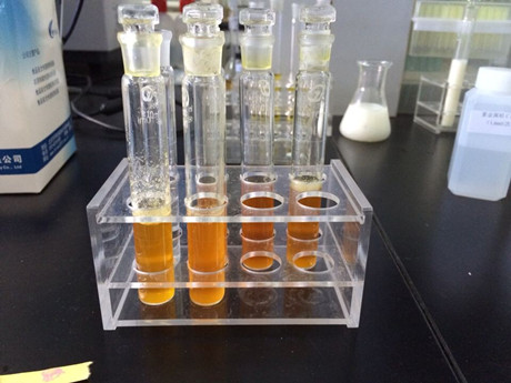 2、取6根試管,1-5號試管作為樣品管,6號為對照管。在樣品管加入3ml樣品液,在對照管中加入3ml緩沖液,隨后分別加入20ul顯色劑和50ul酶試劑,蓋塞混勻靜置10min。
