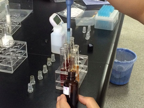 2、消解1.5個(gè)小時(shí),冷卻后,分別將溶液轉移至25mL比色管中,蒸餾水定容至刻度,過(guò)濾。