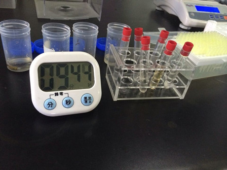 1、稱(chēng)取0.1g茶葉樣品于樣品提取瓶中,加8ml農殘緩沖液,8ml緩沖液震蕩提取30秒,靜置2分鐘。