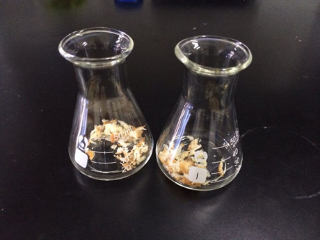 1、 將樣品粉碎,稱(chēng)取粉碎的樣品1.0g,于50mL三角瓶中。