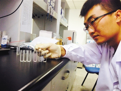 隨后實(shí)驗人員檢測泡椒鳳爪是否加入了超標的防腐劑山梨酸。稱(chēng)取5克樣品,加蒸餾水,搗成勻漿過(guò)濾,吸取2ml溶液到比色管中,加山梨酸試劑,沸水加熱后冷卻,再倒入比色皿中。此時(shí)6種樣品液的顏色有了不同,5種樣品顏色沒(méi)變,1種樣品液的顏色呈現出淺粉色。