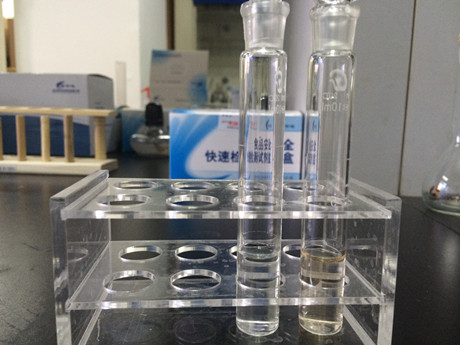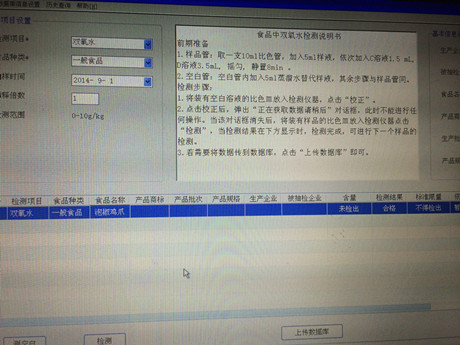 4、倒入比色皿中,置于PCS多功能食品安全檢測儀中檢測。檢測結果:兩個(gè)樣品均未檢出雙氧水。