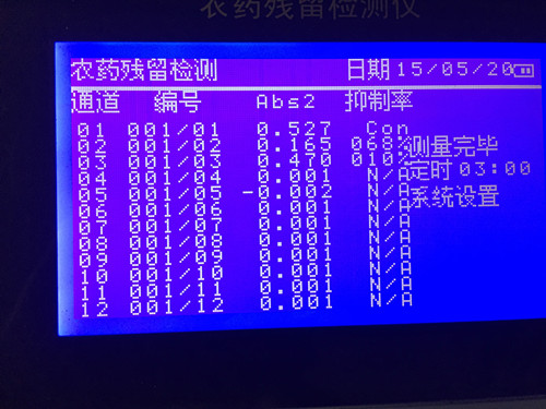 靜置時(shí)間結束后,立馬加入20ul底物并迅速轉移到農殘檢測儀中進(jìn)行檢測,通過(guò)3min檢測我們知道2號茶葉的酶抑制率超過(guò)50%,視為農殘超標。