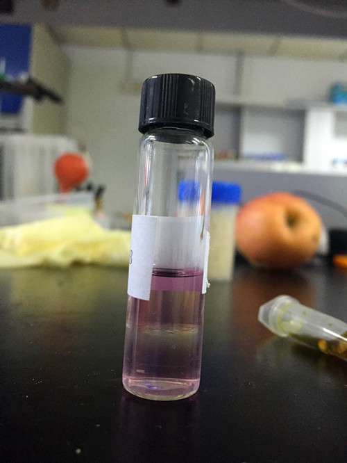 然后用0.5mL吸管吸取試劑A瓶中上層溶液約一半的量至試劑B瓶中;蓋緊B蓋塞子,上下翻轉10次(不可劇烈搖,避免乳化無(wú)法分層)使其混合,靜置至清晰分層。