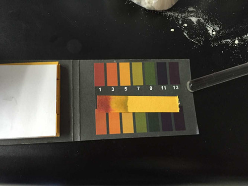 (2) 檢測 在試管中加入硼酸硼砂試劑使ph低于3,用硼砂試紙尖端沾取樣品溶液后取出,用電吹風(fēng)吹干后觀(guān)察試紙變色情況。
