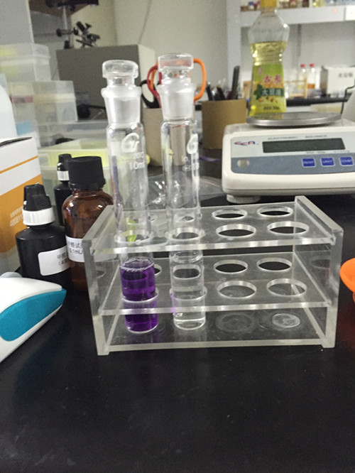 樣品管:取1 mL樣品液于10 mL比色管中,滴加4滴A溶液,再滴加4滴B溶液,搖勻,放置20 min,期間搖動(dòng)6次,再加入0.1 mL C溶液,搖動(dòng)30秒,放置5 min,用蒸餾水稀釋至5 mL刻度線(xiàn),搖勻。