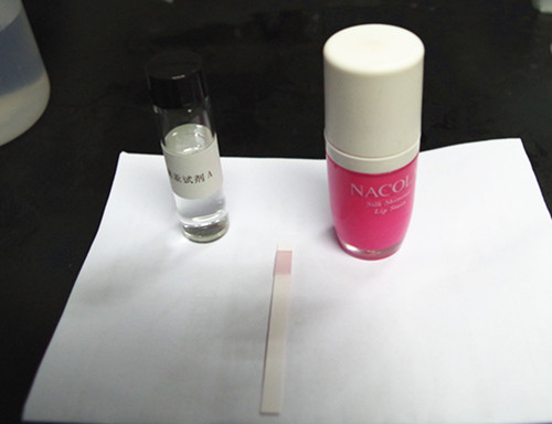 由于唇彩有顏色,因此加入稍許活性炭于檢測液中,攪拌均勻,過(guò)濾,靜置。取上清液進(jìn)行檢測。