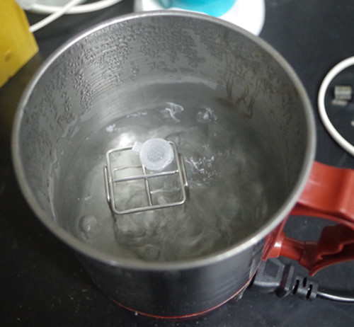 蓋上離心管蓋,放入沸水浴中的托架上加熱2分鐘后取出,上下?lián)u動(dòng)6次作為待測液。