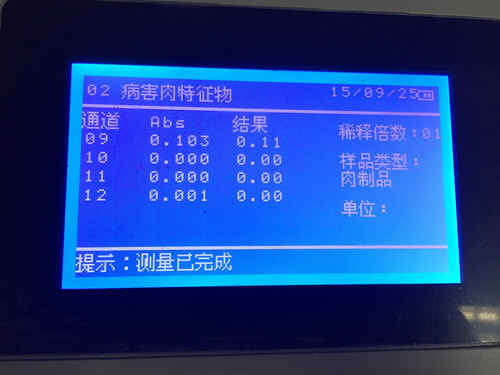 結果顯示樣品中POD活性值低于正常豬肉,疑似病害肉??焖贆z測只能作為初篩,建議送到第三方檢測機構進(jìn)行定量檢測。