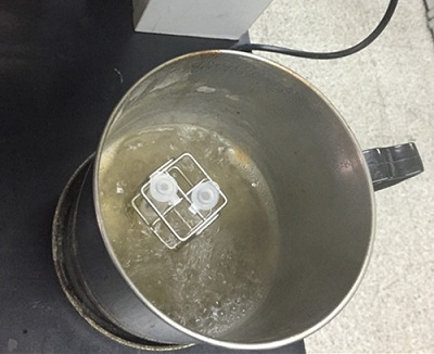 取1 mL蒸餾水于離心管中,再用0.2 mL塑料吸管取已攪拌均勻的蜂蜜1滴加到離心管中。 蓋上離心管蓋,放入沸水浴中的托架上加熱2分鐘后取出,上下?lián)u動(dòng)6次作為待測液。
