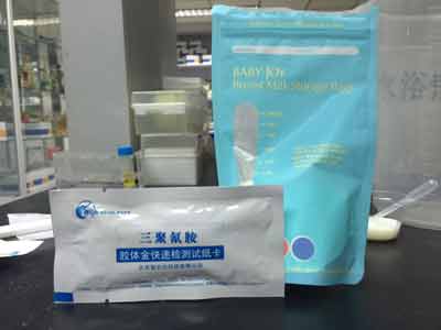 在3~5分鐘內讀取結果,其它時(shí)間判讀結果無(wú)效。結果顯示為陰性,即沒(méi)有三聚氰胺,符合國家標準。