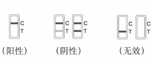 無(wú)效:位置C不顯示出條帶,則無(wú)論位置T顯示出條帶與否,該速測卡均判為無(wú)效,請重測。